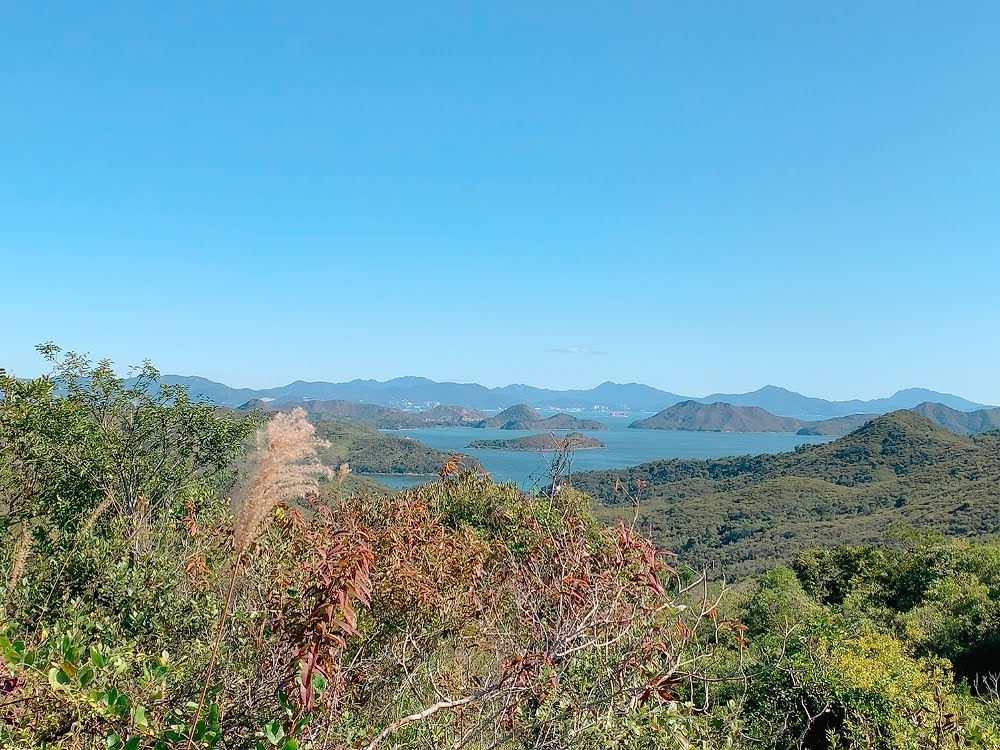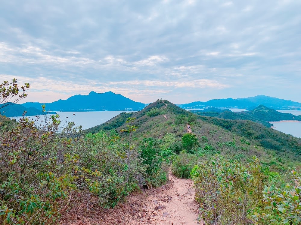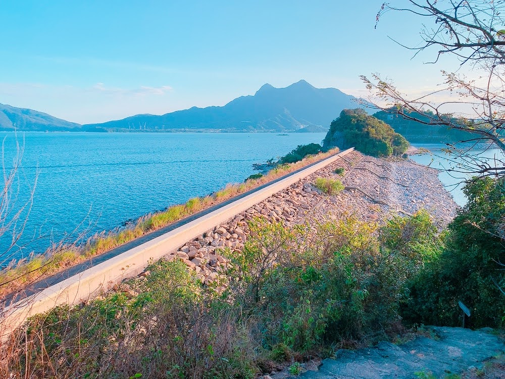 登山後接回船灣淡水湖郊遊徑, 能欣賞左邊印洲塘海岸公園美景, 接著到達大峒