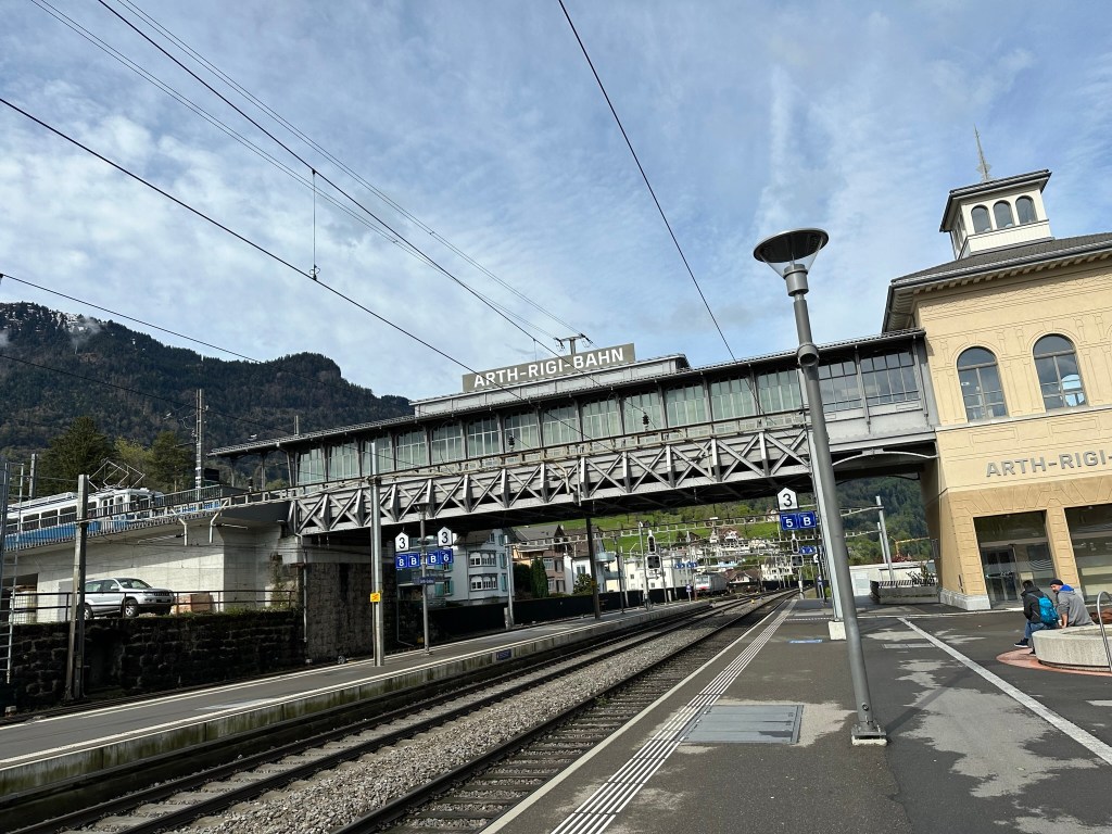 同樣地,食完早餐便加緊腳步從蘇黎世 (Zurich) 出發往Arth-Goldau,在Arth-Goldau車站有便利店可以買一些小食上山食。再向前行有一條天橋,就是往登山纜車 (RIGI MOUNTAIN RAILWAYS)