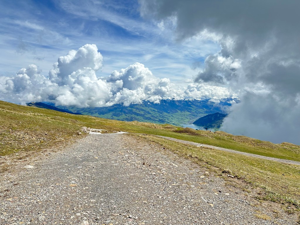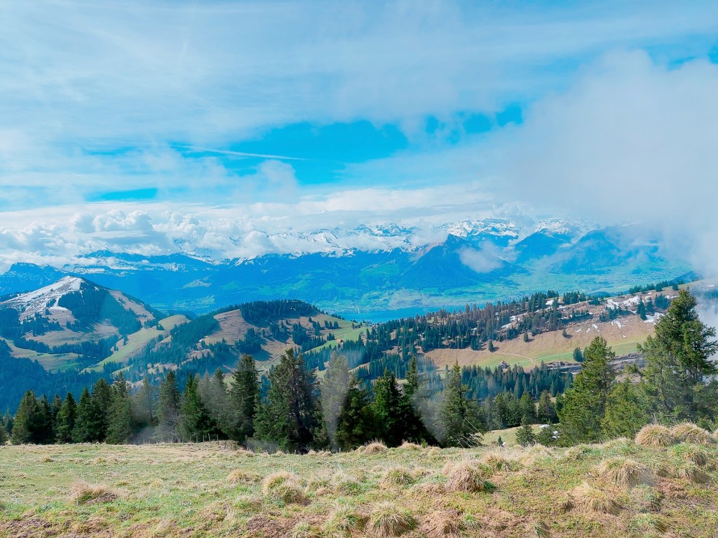 另一邊是當地登山者很喜愛的行山路線,喜歡行山的我,也踏出腳步遊走一下,這些山的高度比香港的山高很多,望的地方很遠,看見不同的陸森湖、蘇黎世湖,加上一大片的草地,只能說瑞士的美景真是十分之美。