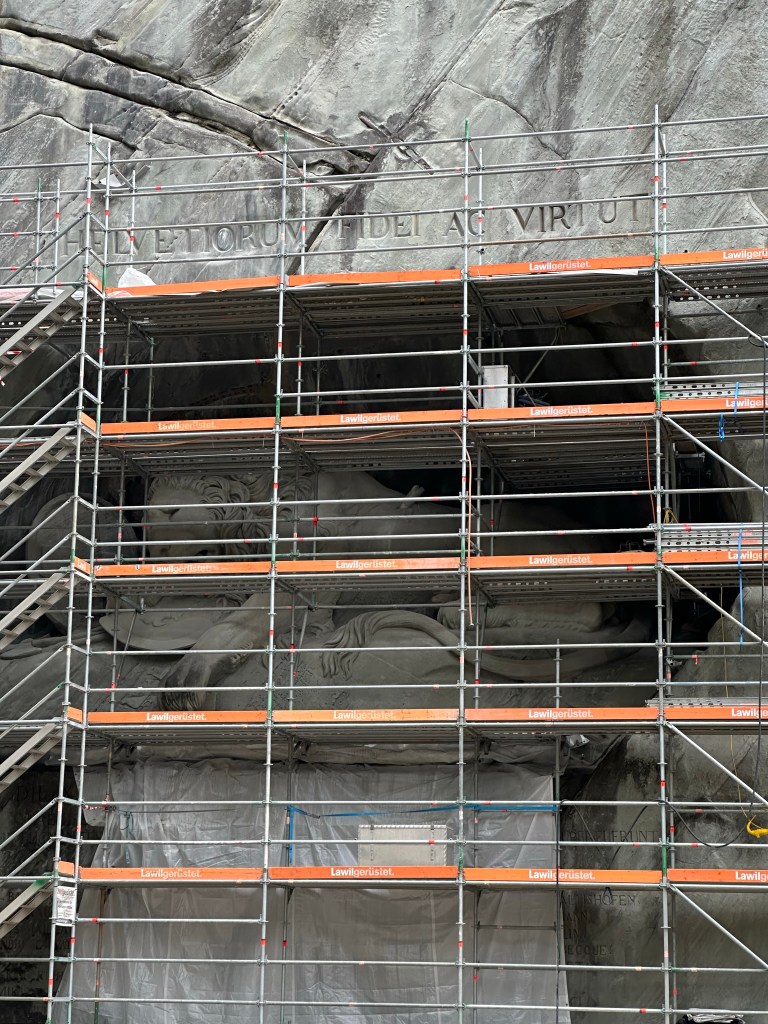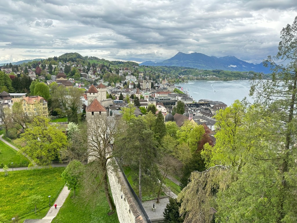 下一站我們往冰川公園(Glacier Garden) 進發,公園裏有九十片鏡子組成的阿罕布拉鏡子迷宮(Alhambra Mirror Labyrinth)打卡和著名的獅子紀念碑(Lion’s Monument) [剛剛維修中],也有介紹冰川和地球暖化的知識,最後我們上了一個燈塔,看看琉森的城景。