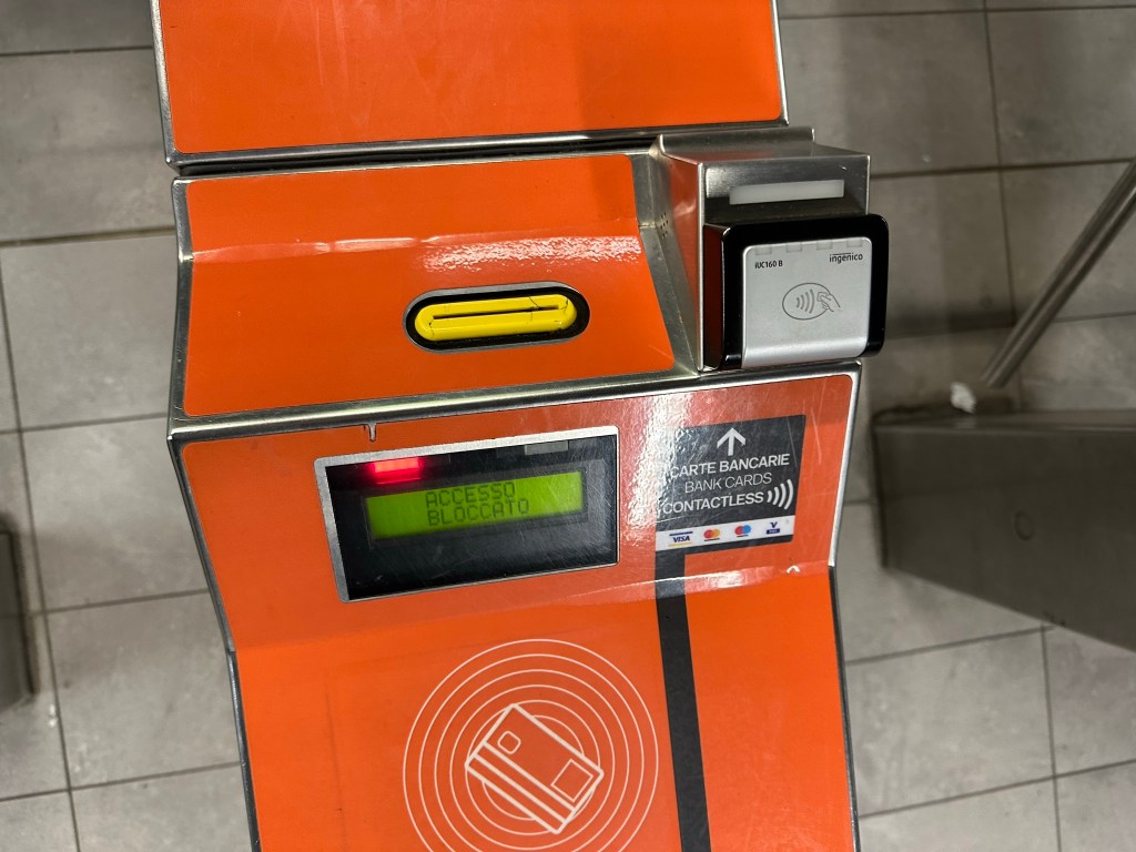 很快地我們就到了大教堂站(Duomo),但出閘時有一個小插曲,就是擦了卡給另外的乘客出閘了,自己卻出不閘,這點要小心,又沒有職員幫助,但幸好只要待幾分鐘後又可以擦卡出閘。