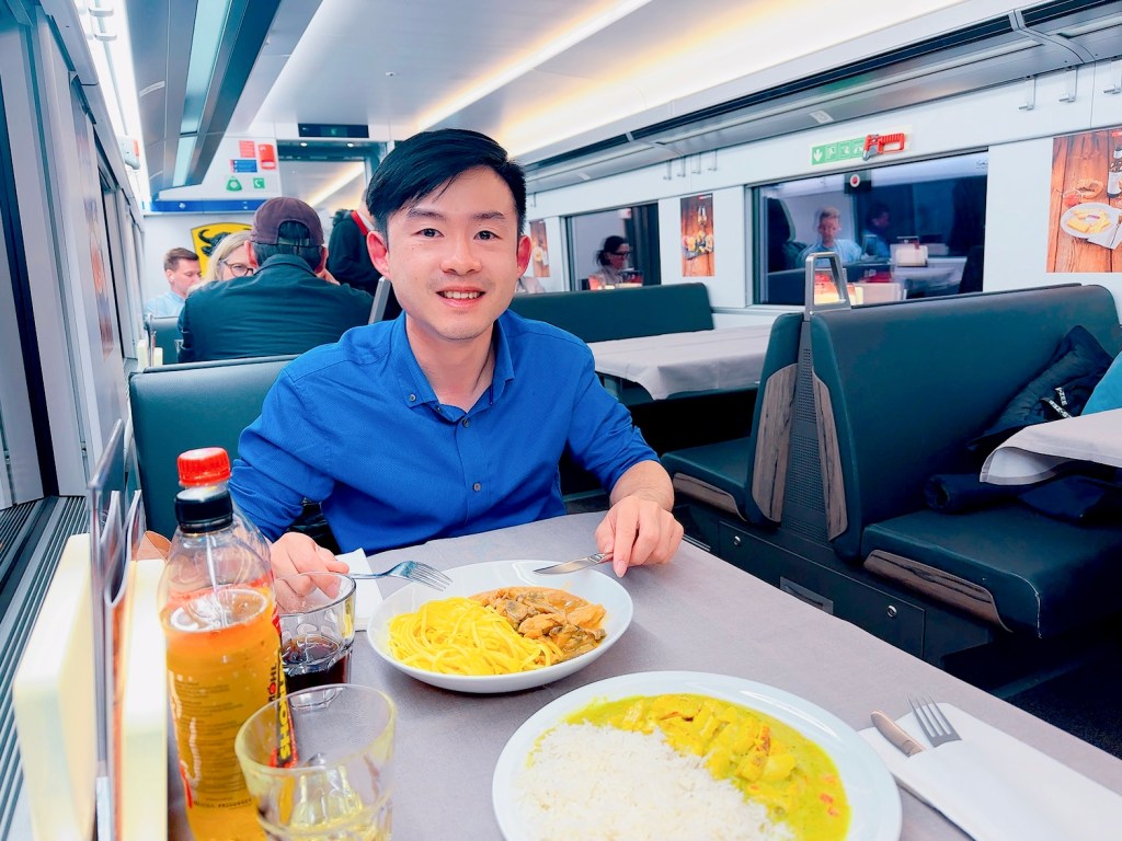 由於時間到晚,我們是了在火車上進食晚餐,雖然餐食都是用蒸爐蒸熱,但味道也十分不錯,份量也合理,而且廚師是德國人, 十分有禮貌,會把食物送給女士們先。簡單的一餐,但感覺十分特別,而且餐車卡也十分寬敞,是詳情火車得一個不錯的早晚餐選擇。