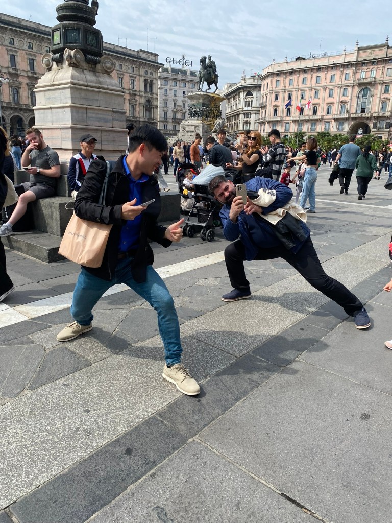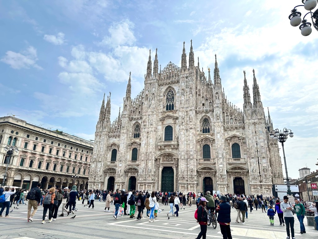 到達大教堂站,先到米蘭大教堂(Duomo di Milano)影相,米蘭大教堂前邊有很多白鴿,如果要影白鴿,就會有其他人過來做"生意",但因為那天是假期,很多本地人旅遊,扒手和小偷們都只能都乖乖地企著休息著,不太敢出來工作。