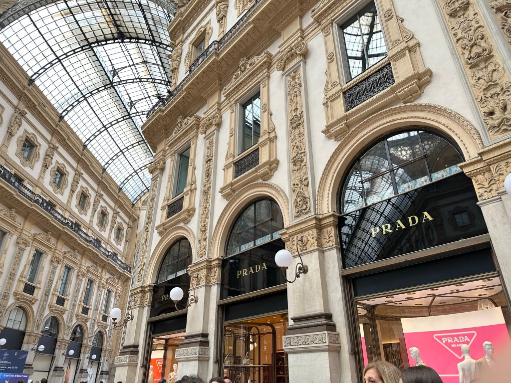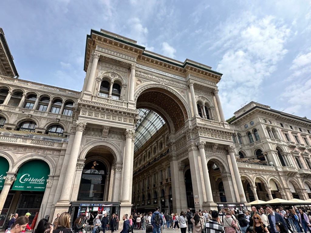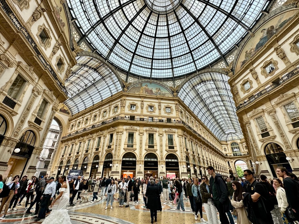 因為早了到大教堂,我們先到埃馬努埃萊二世拱廊(Galleria Vittorio Emanuele II) 影相,這裏的雲石地板和各處的名店,可見米蘭的高貴,但或許只有這裡是最華麗XD。廣場除了有名店,也有一些餐廳讓遊客享受一個美好的午餐。