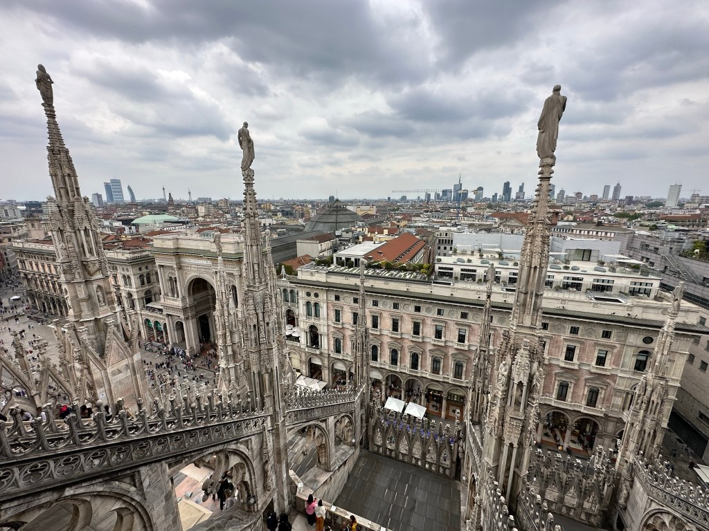 逼下逼下,終於到達了天台,又發現有一條人龍,原來落樓梯都要排隊,但大教堂原來已經算是米蘭其中一個高點,能欣賞米蘭全景,很多也是電影裏見到的經典大廈(E.g. 維拉斯加塔)。