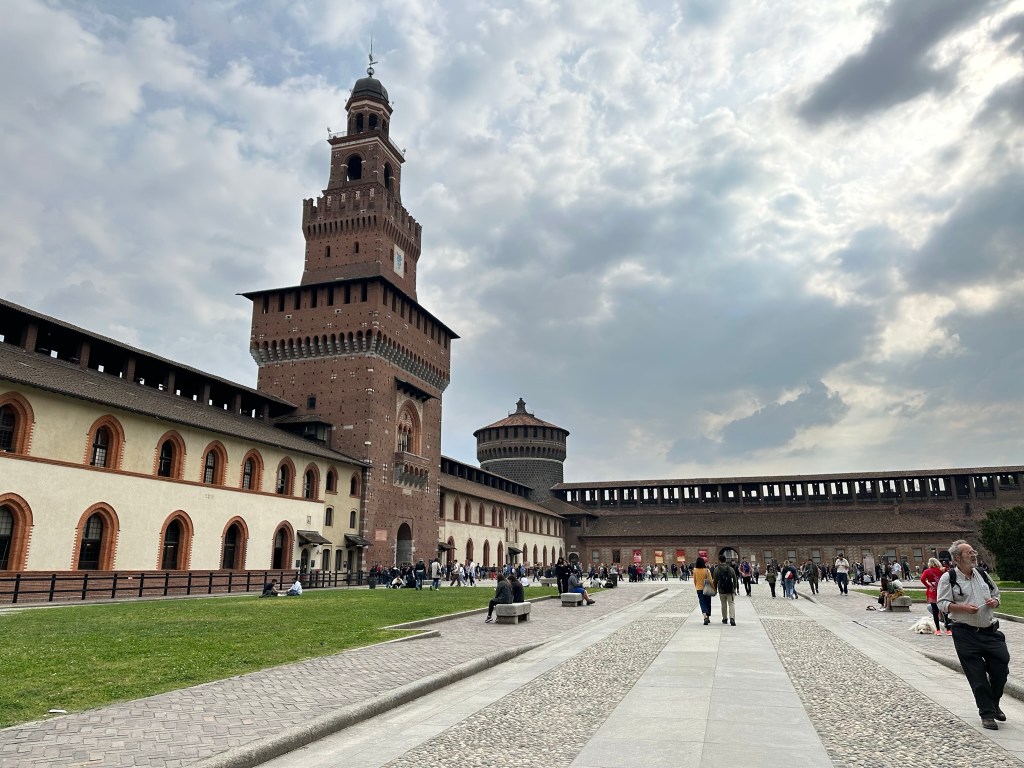 接着我們往14世紀興建的斯福爾扎古堡 Castello Sforzesco 遊覽一下,這座城堡十分巨大,感覺不比溫莎堡差,而且城牆內也有很多綠化地方,旅客們影相也十分美麗。
