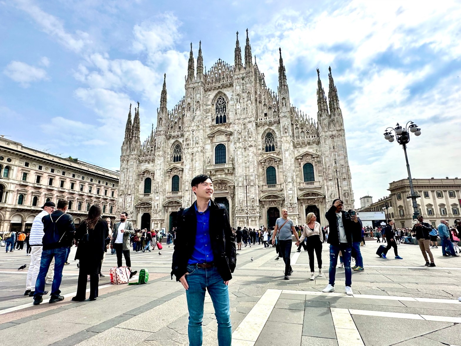 到達大教堂站,先到米蘭大教堂(Duomo di Milano)影相,米蘭大教堂前邊有很多白鴿,如果要影白鴿,就會有其他人過來做"生意",但因為那天是假期,很多本地人旅遊,扒手和小偷們都只能都乖乖地企著休息著,不太敢出來工作。